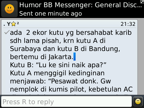 ___________________________________________________________________Sent from my BlackBerry® powered by TwitterFeeds.blogspot.com. Send funny Pictures & Humor Articles via email to: kumpulan.humor@gmail.com
