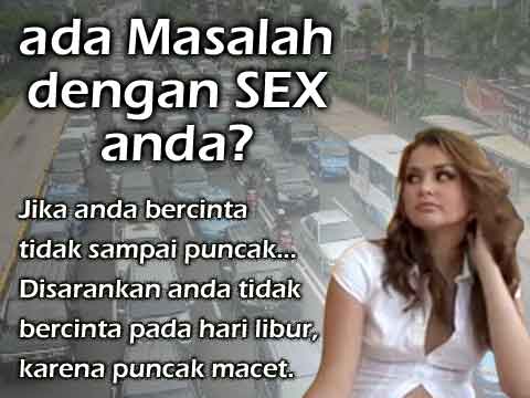 Jika anda mengalami masalah sex, sulit untuk mencapai puncak bersama pasangan anda, sebaiknya jangan lakukan di hari libur, sebab Puncak selalu macet.